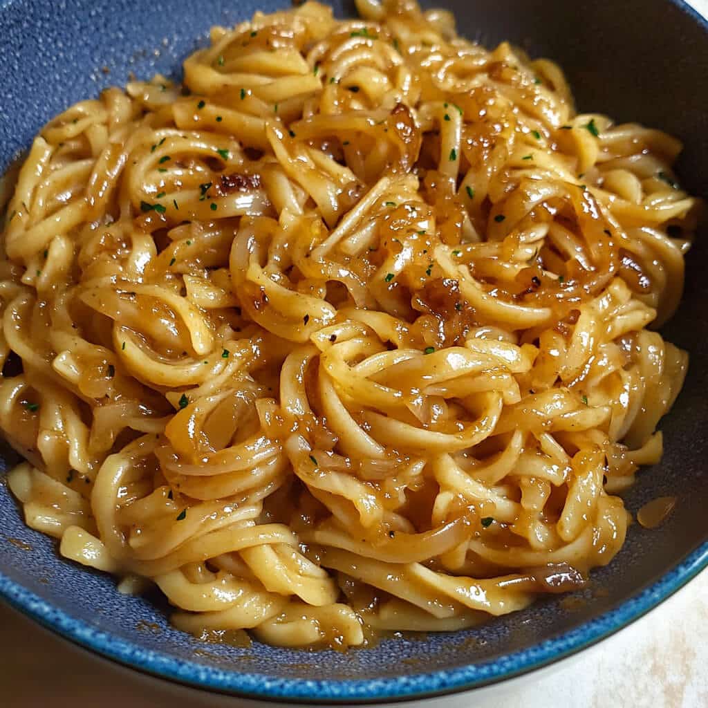 This dish has a special place in my kitchen. I first made it on a quiet weeknight when I needed something quick yet satisfying, and it quickly became a go-to recipe. The process of slowly caramelizing onions until they’re golden and jammy fills the kitchen with an irresistible aroma that feels like an invitation to unwind. Tossing the pasta in this rich onion mixture creates a silky sauce that clings to every noodle, making each forkful taste like pure comfort.