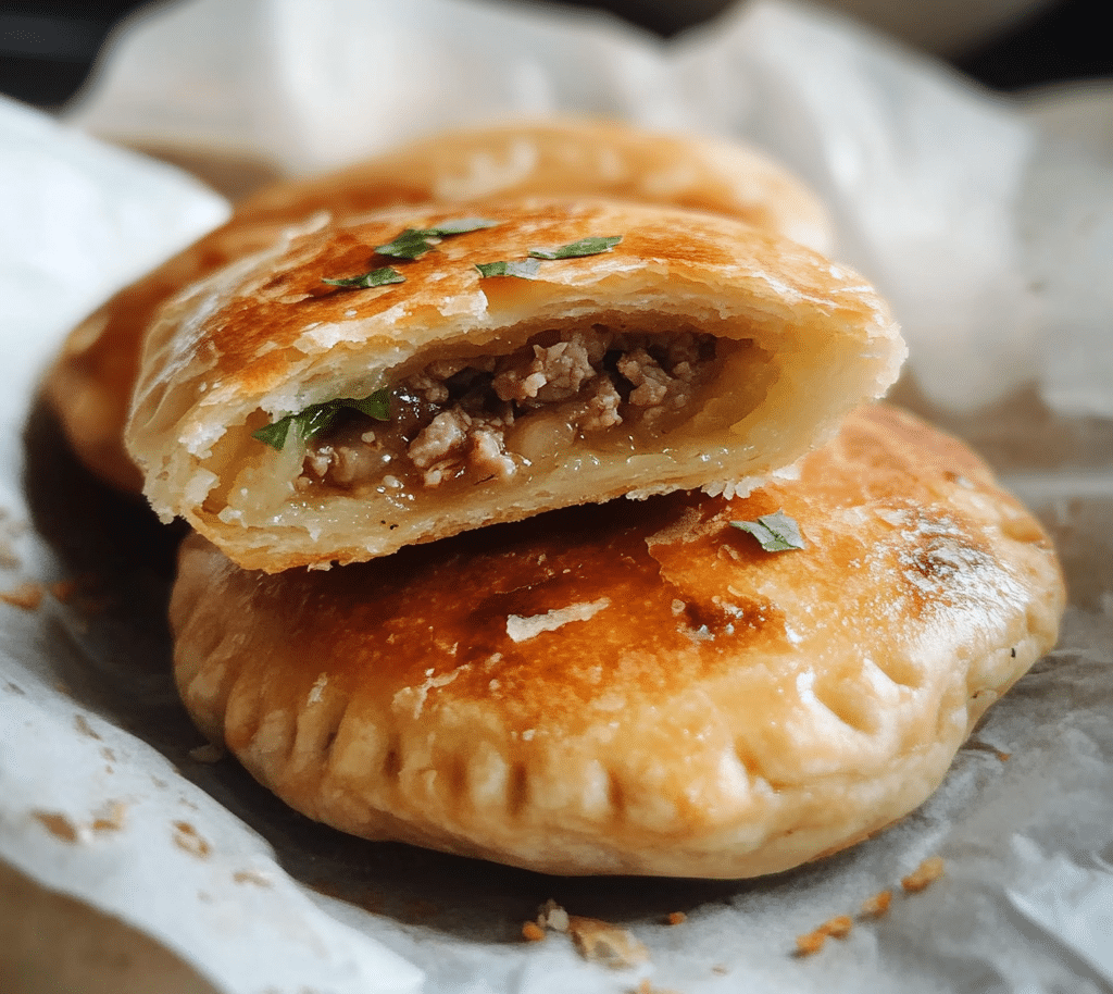 - Fill the Pies: Spoon a generous amount of the meat filling onto the center of each dough circle. Fold the dough over the filling, pinching the edges to seal. You can either fold the edges into pleats or simply pinch them together.
