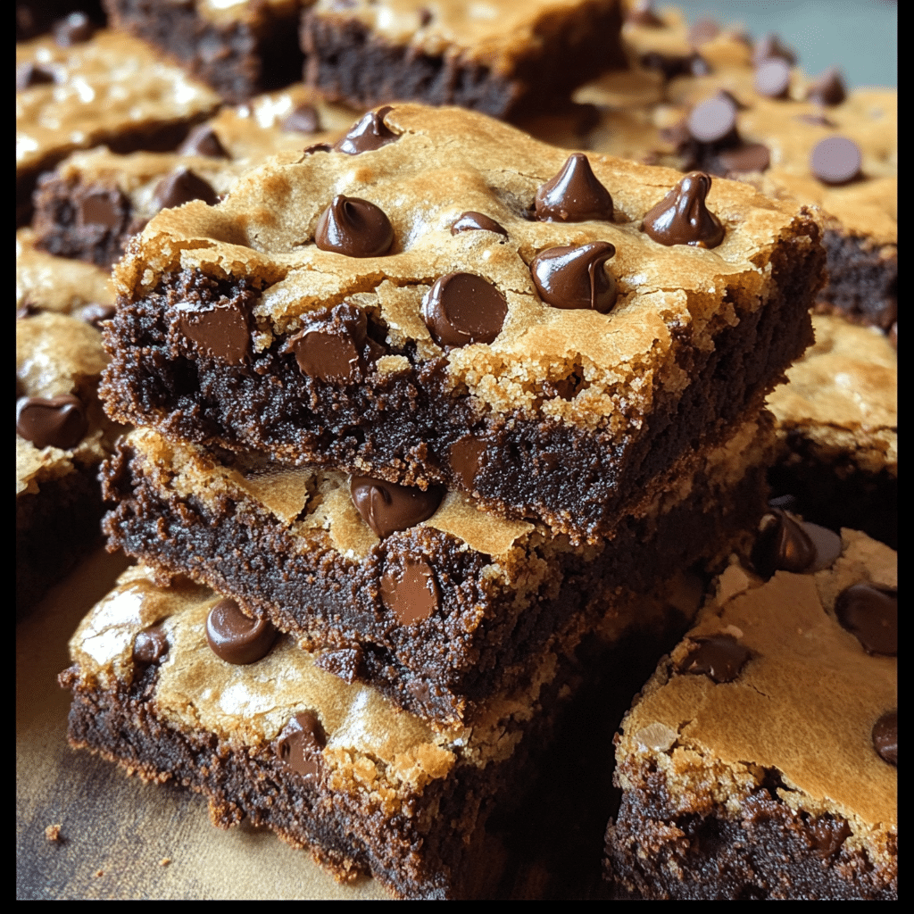Chocolate Chip Cookie Brownies are the ultimate indulgence, combining the gooey richness of brownies with the soft, chewy perfection of chocolate chip cookies. This decadent dessert offers the best of both worlds, satisfying your sweet tooth with every bite.