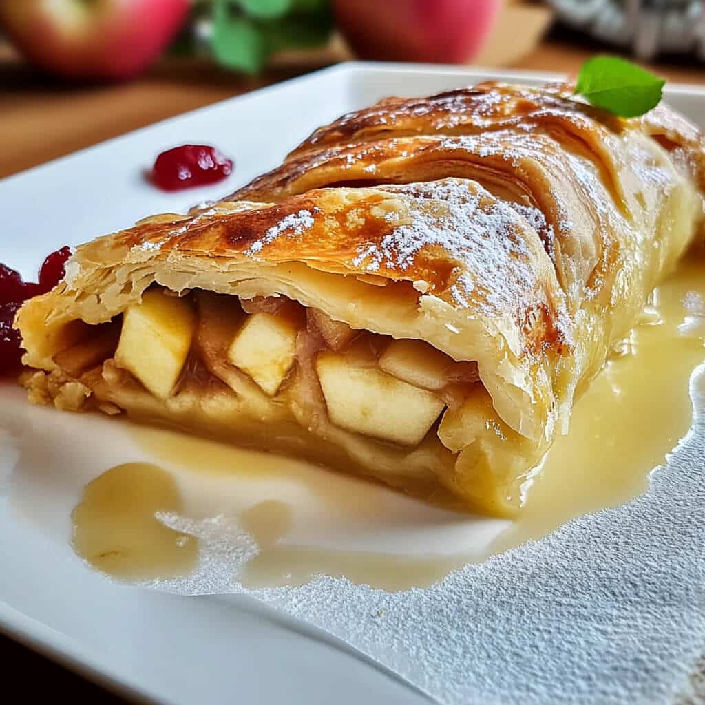 - Cool Slightly: Let the strudel cool before slicing to avoid losing the filling.