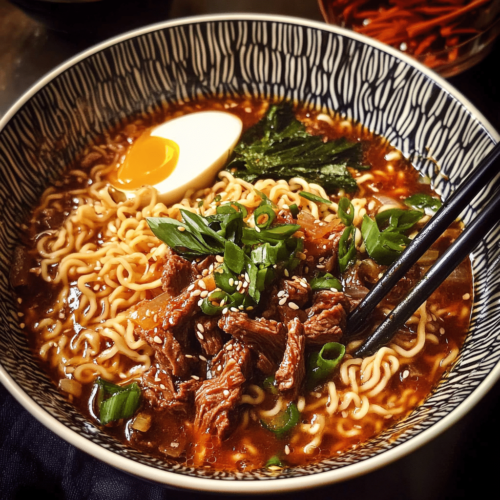 - Crispy Noodles: Unlike traditional ramen, the noodles in this recipe are crispy on top, creating a delightful contrast to the tender beef and broth. It’s an exciting twist that adds texture to every bite.