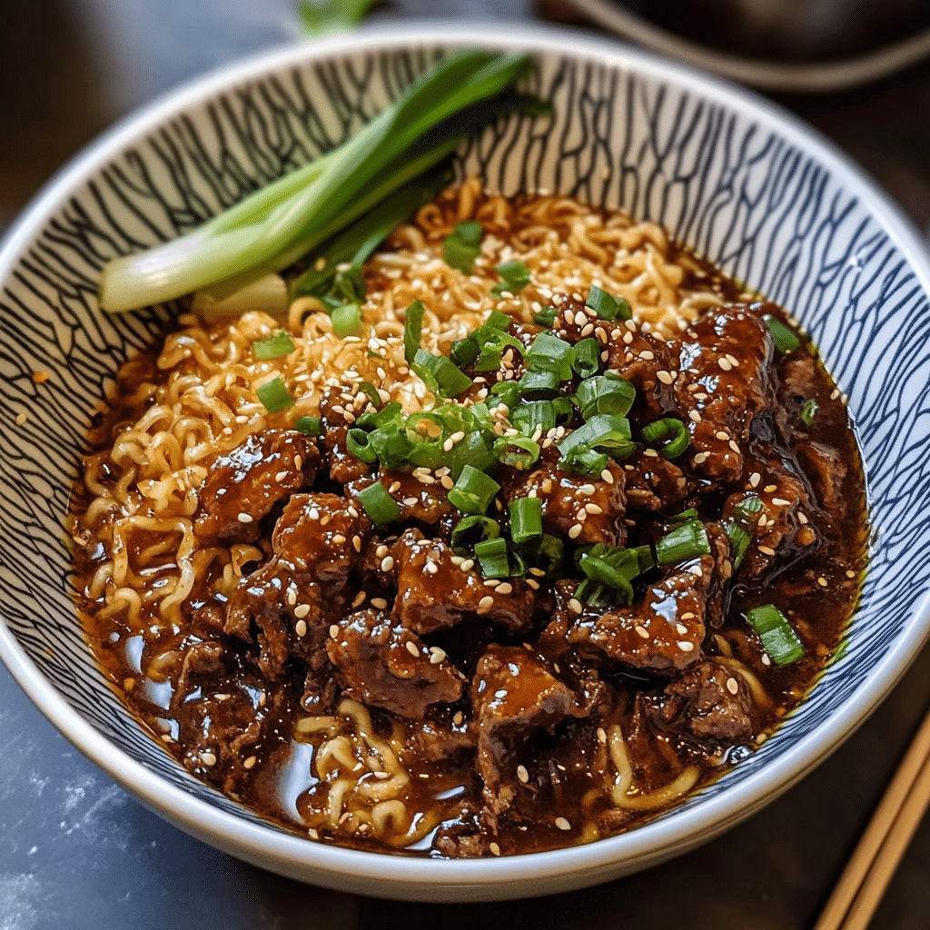 This recipe has quickly become a go-to in my kitchen. The first time I made it, I couldn’t believe how simple yet delicious it was. As the beef slowly simmers in the crockpot, the whole house fills with the mouthwatering aroma of garlic, soy sauce, and spices. When it’s time to serve, the crispy ramen adds a playful contrast, making it the perfect texture combination.