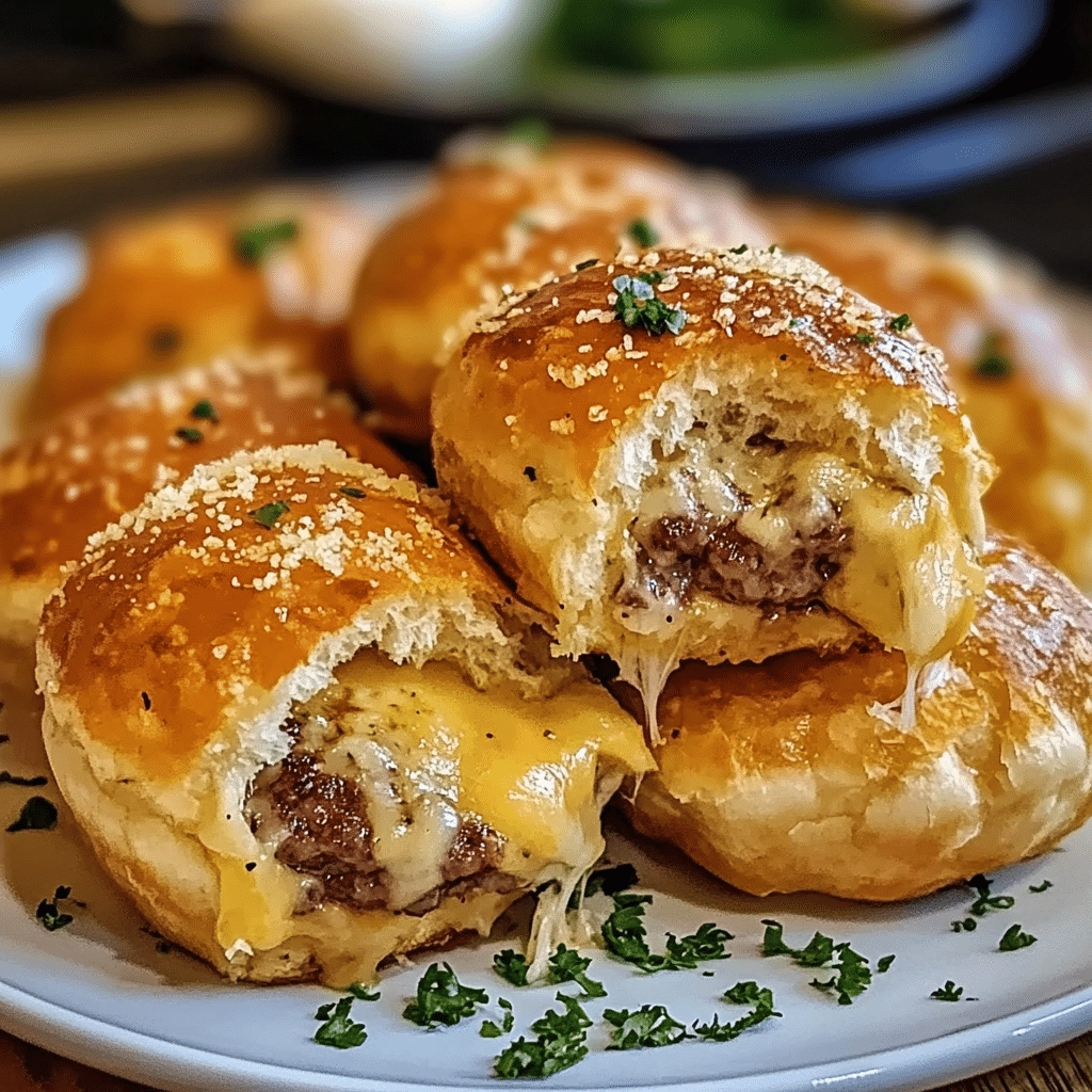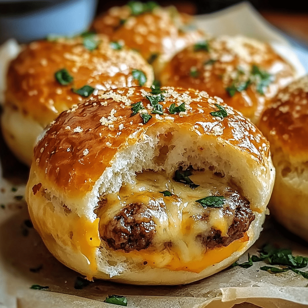These cheeseburger bombs are a personal favorite, and I first made them when hosting a casual get-together with friends. The aroma of garlic and melted cheese filling the air is mouthwatering and creates a warm, inviting atmosphere. The best part is how easy they are to prepare, making them a go-to for parties, movie nights, or any occasion when you want to impress without a lot of effort. The garlic parmesan topping gives them an irresistible extra kick, and dipping them in your favorite sauce takes the experience to another level.