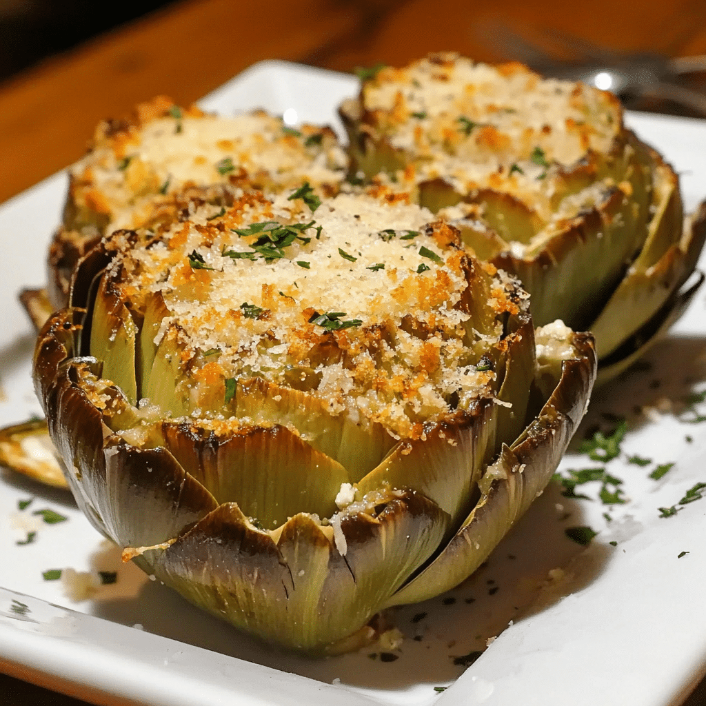 - Crispy Parmesan Topping: Top the stuffed artichokes with additional Parmesan and breadcrumbs, then broil for an even crispier crust.