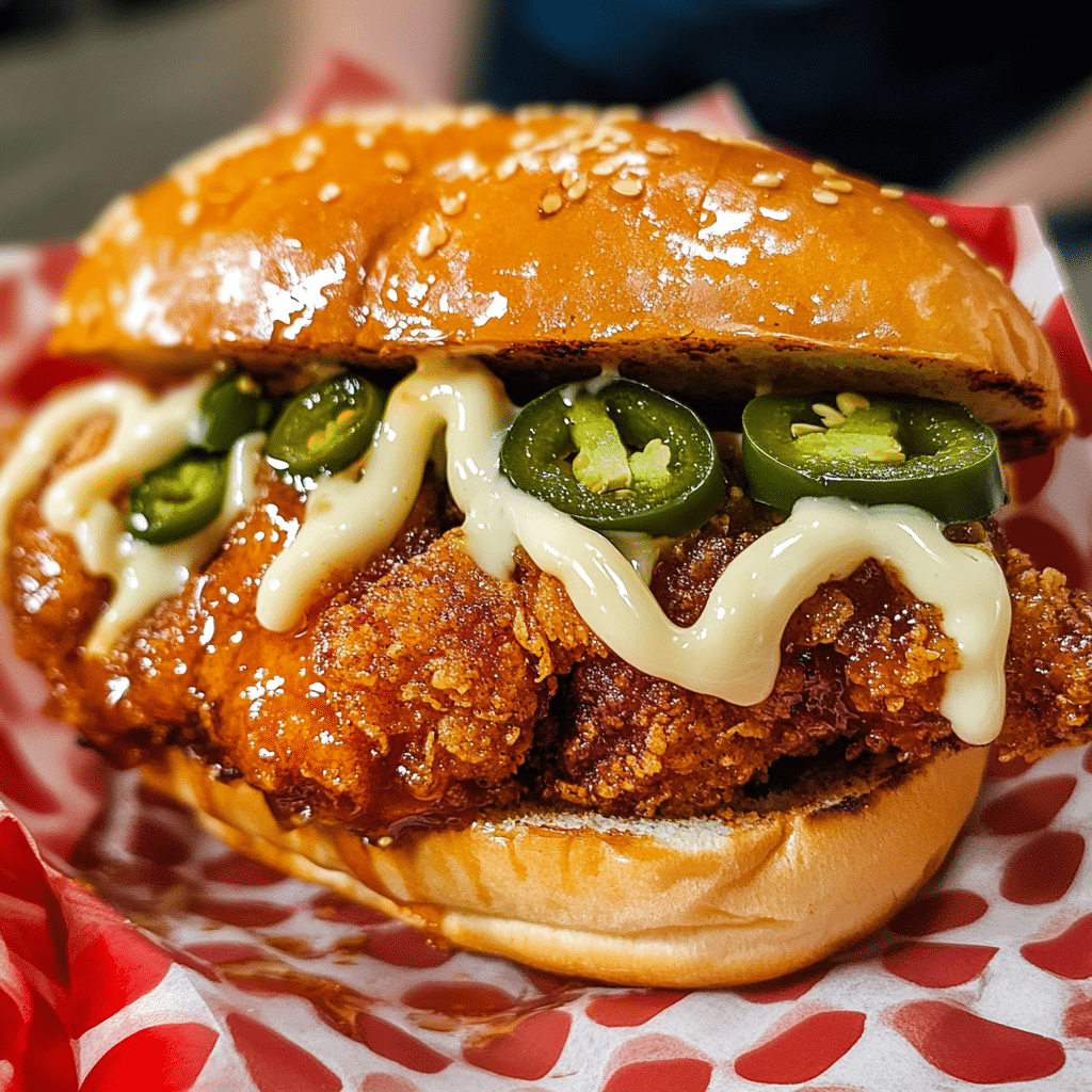 This sandwich quickly became a favorite of mine after I first made it for a summer cookout. The heat from the jalapeños and the sweetness of the honey made for an addictive combo that had everyone reaching for more. The heat is noticeable, but the honey drizzle offers a perfect balance, ensuring each bite is exciting without overwhelming the senses. The crispy chicken, golden brown and crunchy on the outside, is juicy and tender on the inside, making every bite just right.