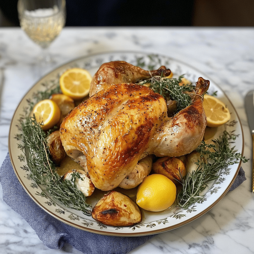 This recipe holds a cherished spot in my cooking repertoire. I first made it for a Sunday dinner with friends, and it quickly became a crowd favorite. As the chicken roasts, the fragrance of lemon and herbs fills the kitchen, drawing everyone to the table with anticipation. The skin crisps up beautifully, while the meat remains moist and flavorful, offering that perfect balance between crunch and tenderness.