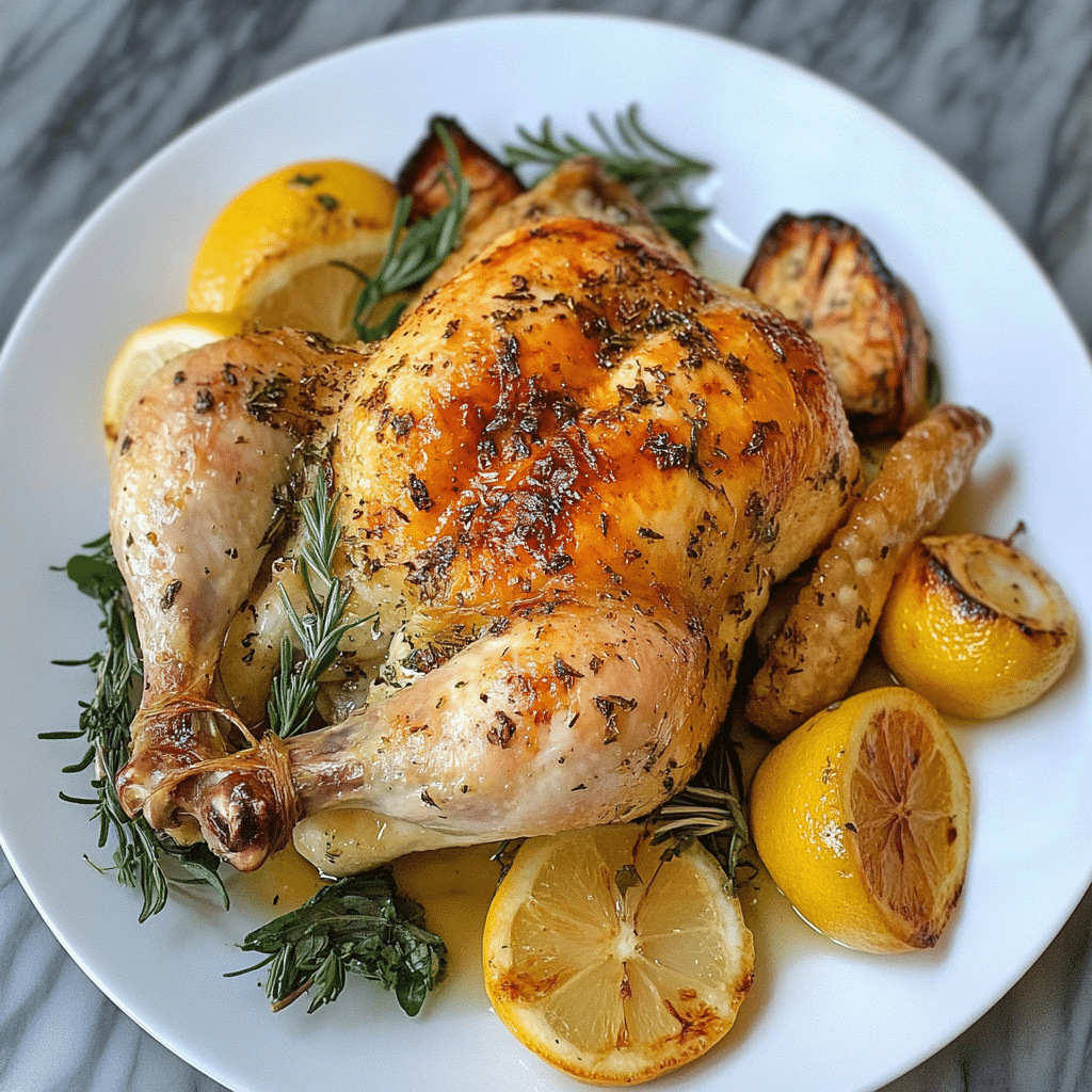 What truly sets this recipe apart is its simplicity and versatility; it pairs effortlessly with a wide range of sides, from roasted vegetables to creamy mashed potatoes. Whether you’re preparing a family dinner or hosting friends for a special occasion, this roast chicken will surely impress everyone at the table. I’m confident it will become a go-to favorite in your kitchen, bringing fresh, vibrant flavors to every meal. Enjoy every succulent bite, and don’t forget to share your culinary masterpiece—I can’t wait to see how you make it your own!
