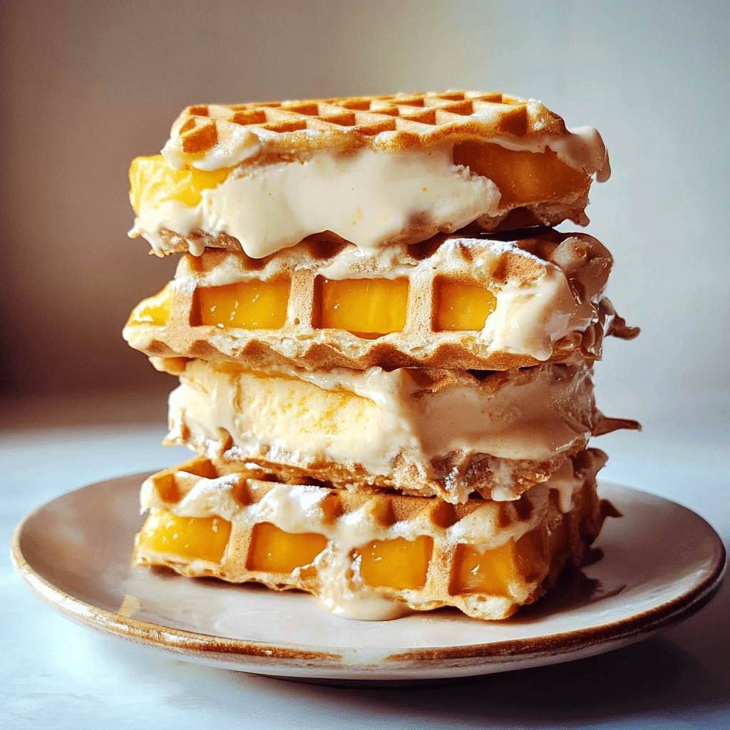 Mango and Miso Caramel Waffle Ice Cream Sandwiches are an inventive, flavor-packed dessert that blends sweet, tangy, and umami elements in an unexpected but absolutely delicious way. The soft waffle cookies are perfectly crisped on the outside yet fluffy on the inside, making the perfect foundation for the luscious combination of mango and miso caramel ice cream. The mango brings a bright, tropical sweetness, while the miso caramel adds a savory, rich depth that takes the flavor profile to new heights. Every bite is a delightful explosion of contrasting textures and tastes, creating a treat that’s both sophisticated and playful.