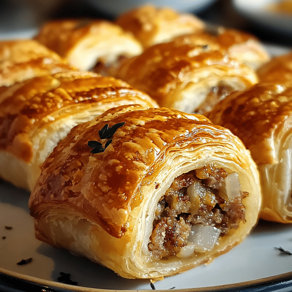 What makes this recipe stand out is its versatility; whether served as a decadent appetizer at a dinner party, a tasty snack during a cozy night in, or even as a hearty lunch, these sausage rolls never disappoint. Easy to prepare but impressive in flavor, Savory French Onion Sausage Rolls are sure to become a staple in your kitchen. I can’t wait for you to try this recipe and make it your own—don’t forget to share your delicious creations and tag me on social media! Enjoy every bite of these flavorful delights!