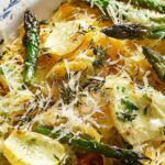 Spaghetti Squash with Asparagus, Ricotta, Lemon, and Thyme is not just a dish; it’s a celebration of flavors, colors, and health. This light and vibrant dish beautifully combines the playful texture of spaghetti squash with the fresh crunch of asparagus and the creamy richness of ricotta. Topped off with a zest of lemon and a hint of thyme, it creates a delightful symphony that dances on your palate.