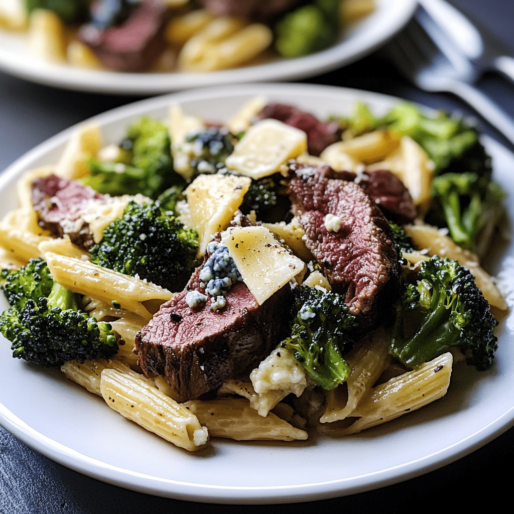 What truly sets this dish apart is its ability to combine indulgence and freshness in one plate. The steak and blue cheese pasta delivers a satisfying heartiness, while the roasted broccoli provides a light, earthy finish. Whether you’re preparing a weeknight dinner or a special occasion meal, this recipe is sure to be a hit with its effortless sophistication and unforgettable taste. I can’t wait for you to try it! Don’t forget to share your delicious creations—I love seeing how you make this dish your own! Enjoy every flavorful bite!