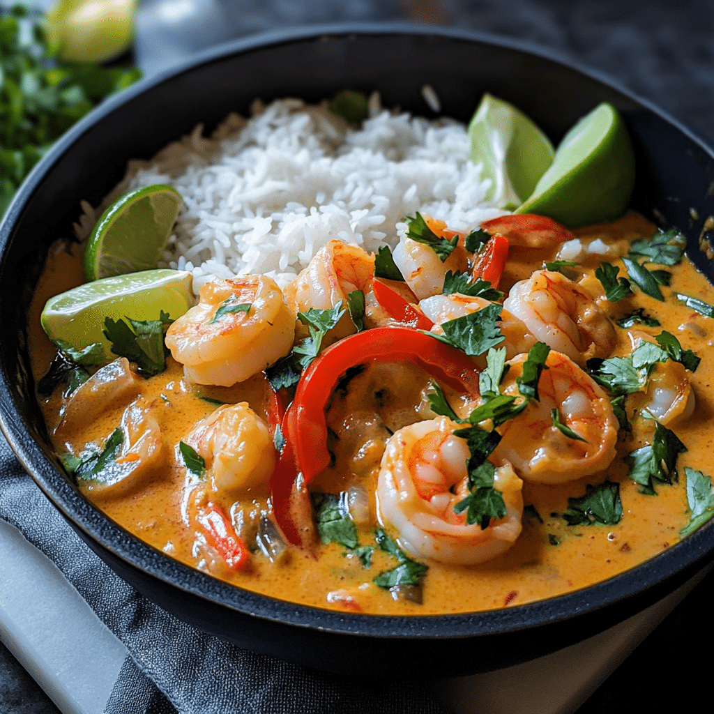 Thai Coconut Shrimp Curry is a bold and flavorful dish that brings together the richness of coconut milk, the freshness of lime, and the perfect balance of heat and spices. Tender shrimp are cooked just right in a fragrant curry base that’s infused with lemongrass, ginger, and garlic. Each bite is a harmony of creamy, tangy, and spicy notes that’s utterly satisfying. This dish is not just a meal—it’s an adventure for the taste buds.